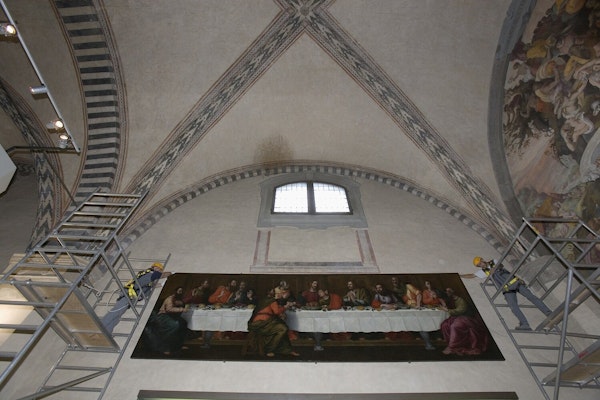 The dimensions of thi spainting are also impressive. Consider that the entire painting coming from the refectory of the convent of Santa Caterina di Cafaggio (now dismantled), is 7 meters long and 2 meters high with life-size painted characters.