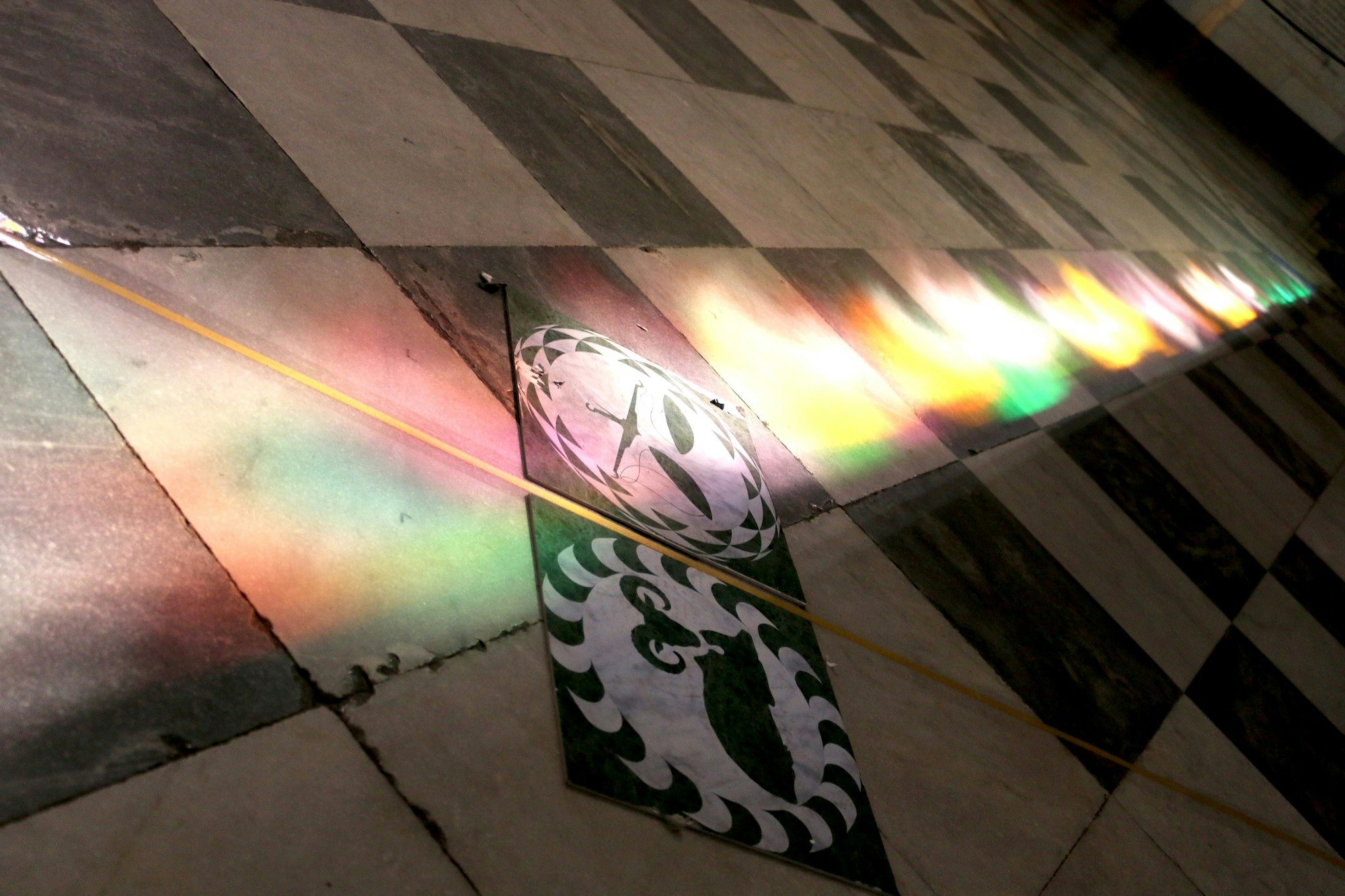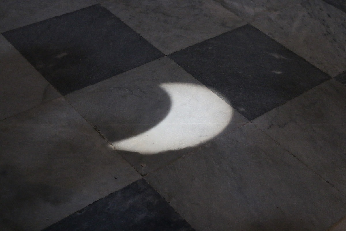 L'eclissi parziale viene proiettata sul pavimento della basilica attraverso uno dei fori gnomonici porgettati da Egnazio Danti più di 500 anni fa.