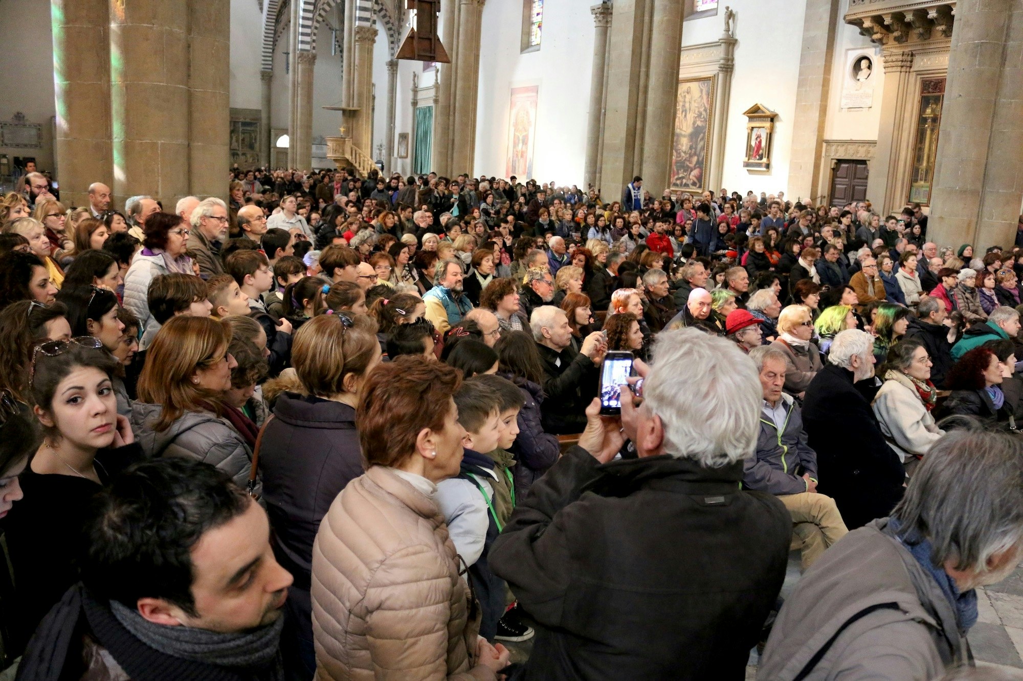 La folla fuori dalla Basilica