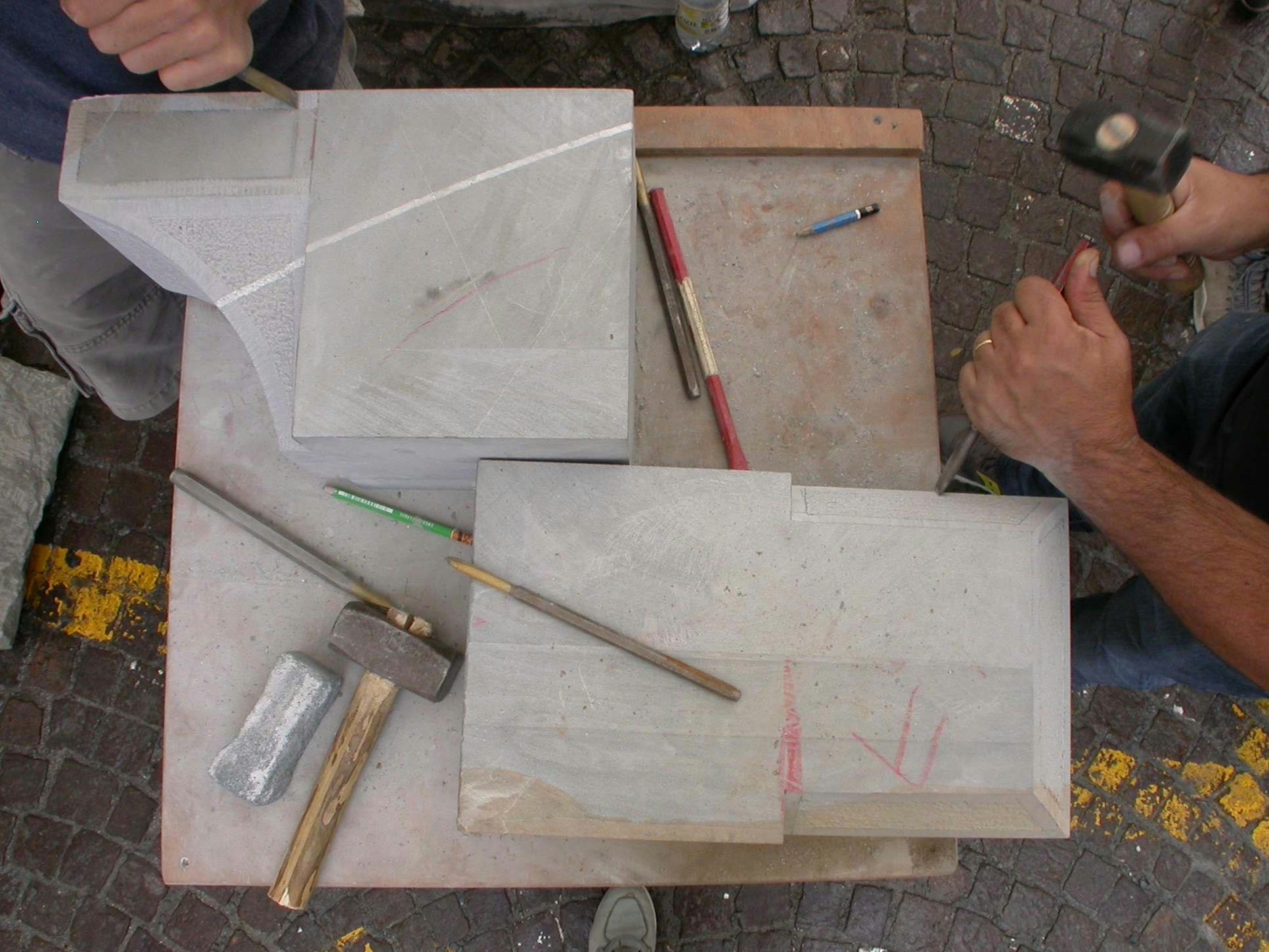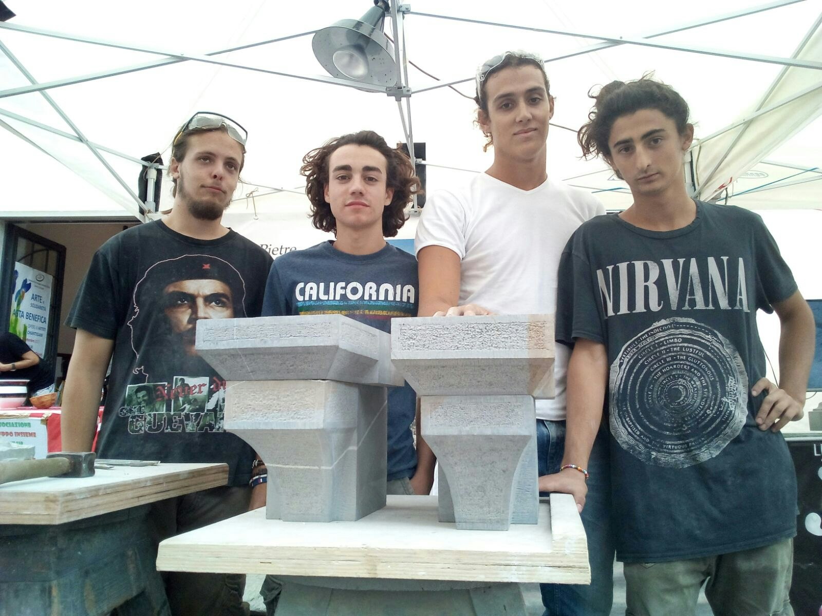 Gli allievi del Corso di Pittura e Scultura, Alessandro Bongini e Bernardo Lascialfari della Va, Edoardo Tongiani e Duccio Zingoni della IVa, sotto la guida esperta del prof. Rocco Spina si sono potuti cimentare nella realizzazione di due mensole, composte da capitello e pieduccio. Hanno seguito la ricerca della sagomatura, la sbozzatura dei pezzi e la loro rifinitura a bocciarda fine.