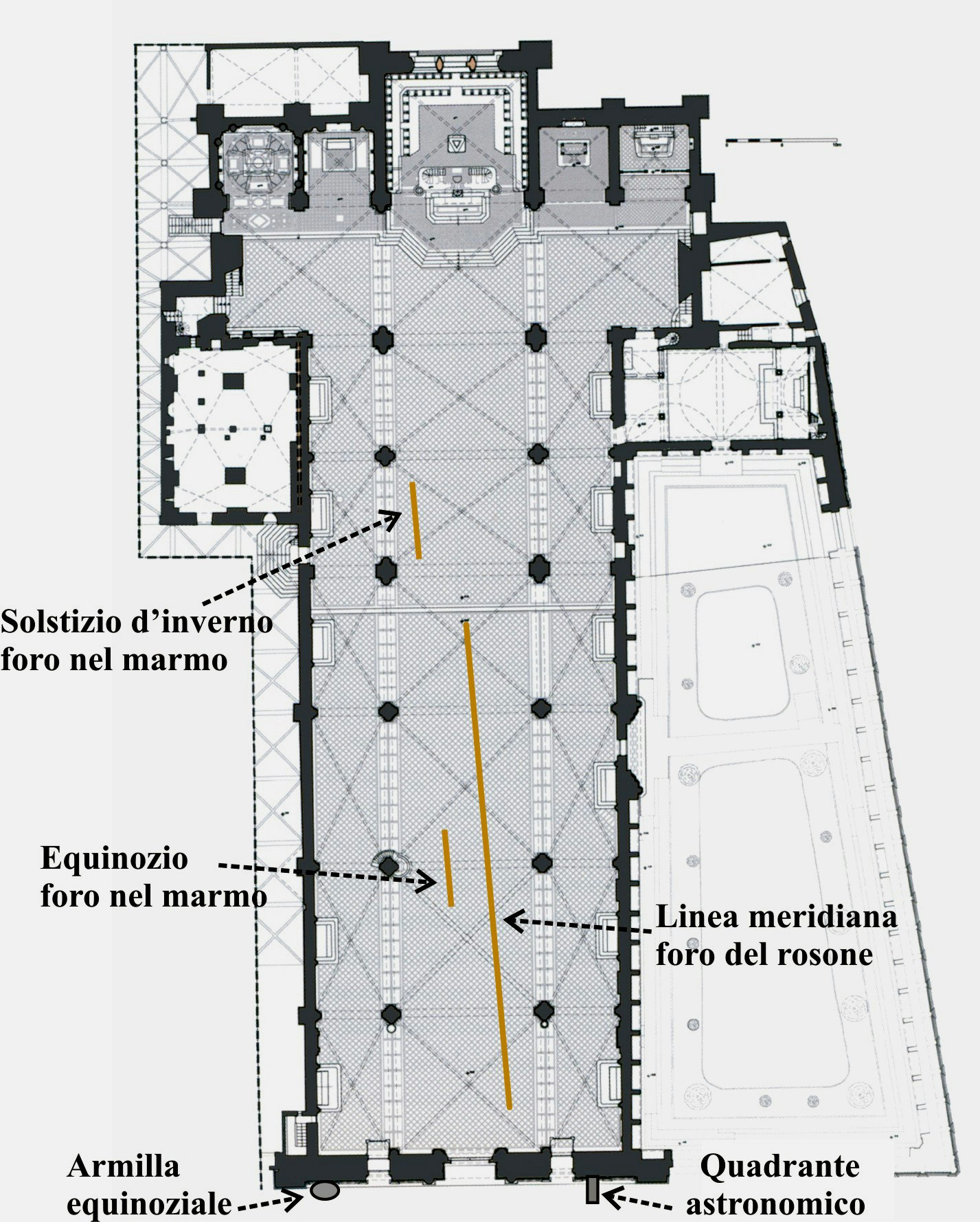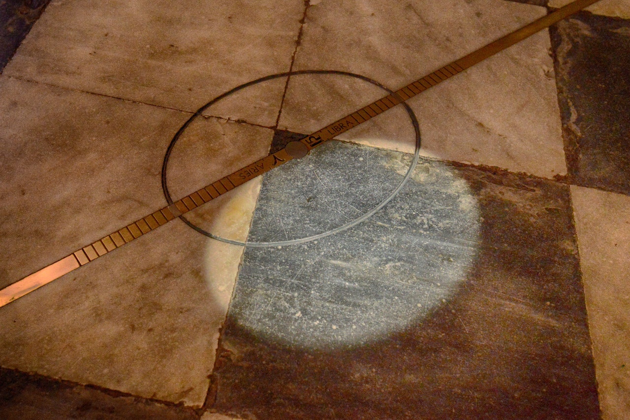 hanno centrato le ellissi incise nel pavimento a cavallo delle linee meridiane in ottone, nei punti indicati per l’equinozio.